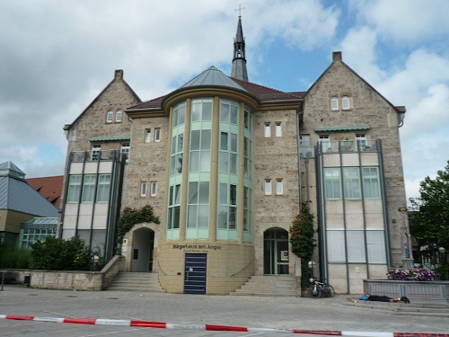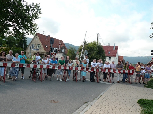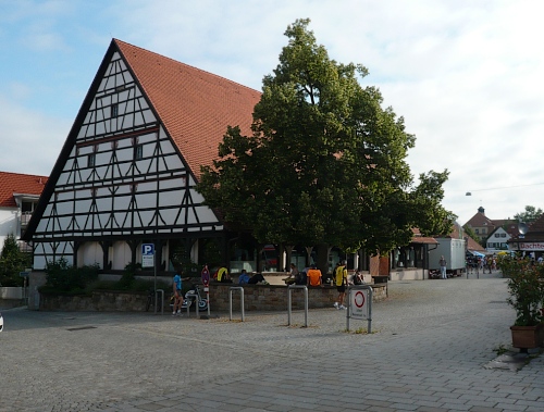 Am Ende der Straße sollte man kurz nach links blicken, denn hier befindet sich das historische Bahnhofsgebäude von 1859 und dahinter in der Straße das alte Postamt von 1893. Wir biegen rechts ab in die Hindenburgstraße und kommen an der 1801 errichteten Zehntscheuer vorbei. Dann geht es gleich wieder links ab in die Innere Heerstraße. Durch eine Rad- und Fußgängerunterführung unterqueren wie die Eisenbahn und die Bundesstraße.