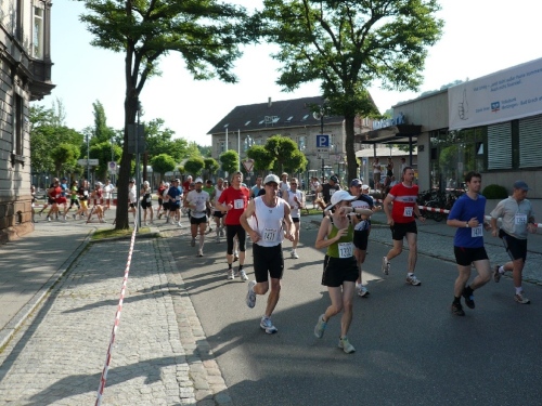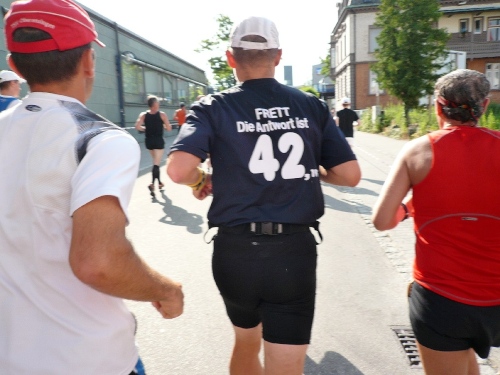 Ich bin vielleicht etwa 20 Minuten oder vier Kilometer lang unterwegs, da kommt schon der führende 10-Kilometer-Läufer entgegen. Ein wenig Aufmerksamkeit ist jetzt auf dem Radweg notwendig, doch innerhalb kurzer Zeit gewöhnt sich das Feld an die Entgegenkommenden.