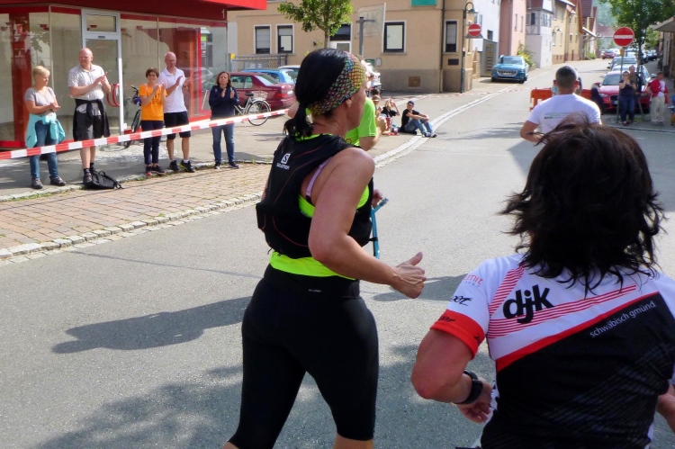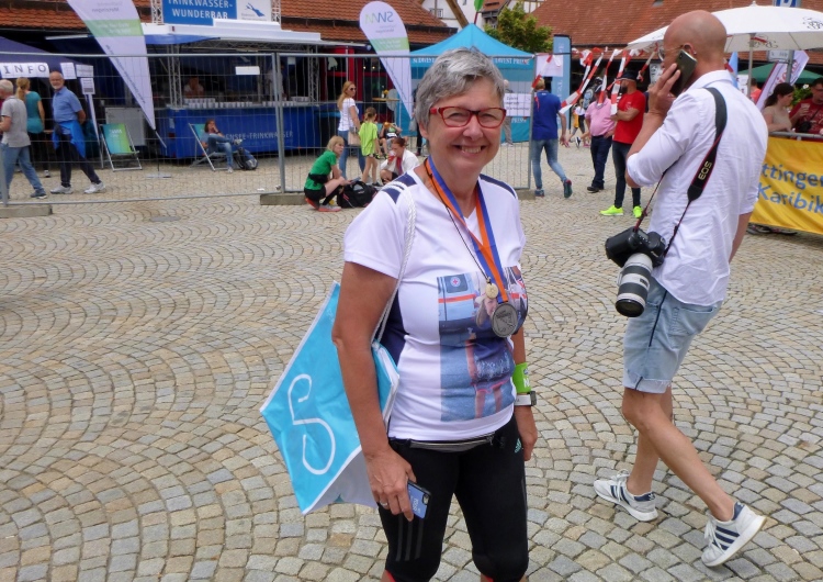 Nach mehreren alkoholfreien Bierchen finden mich auch Judith und Henry. Wahrscheinlich erübrigt es sich zu erwähnen, dass Judith wieder mal ihre Altersklasse dominierte und dass der Wettkampf der 1965er Herren wieder zugunsten des Teilnehmers aus der ehemaligen Hauptstadt der DDR ausgegangen ist. Nun könnte man noch länger feiern oder sich von einem Physiotherapeutenteam massieren lassen. Aber nachdem auch Gerhard das Ziel erreicht hat, brechen wir zu den Duschen in der Öschhalle und anschließend zu etwas Sightseeing auf der Alb auf. Nürtingen mit einer sehenswerten Altstadt ist auch einen Stopp wert.