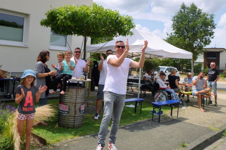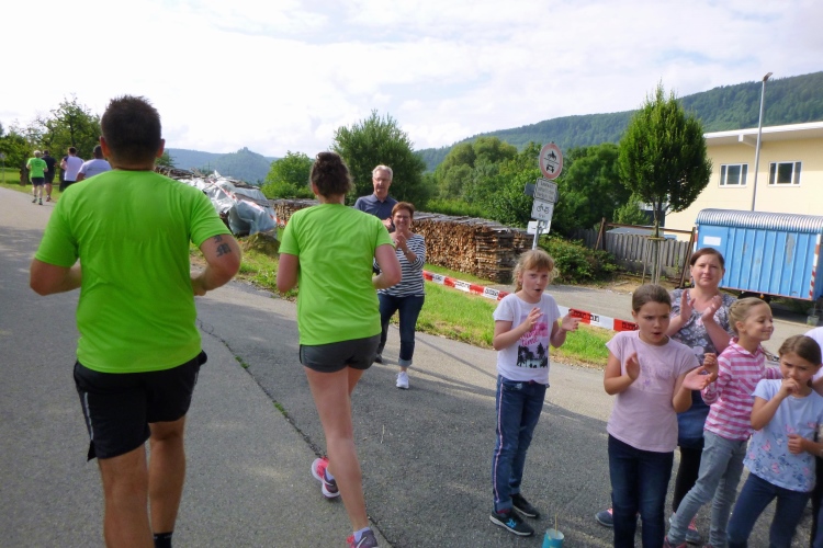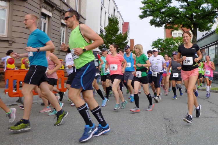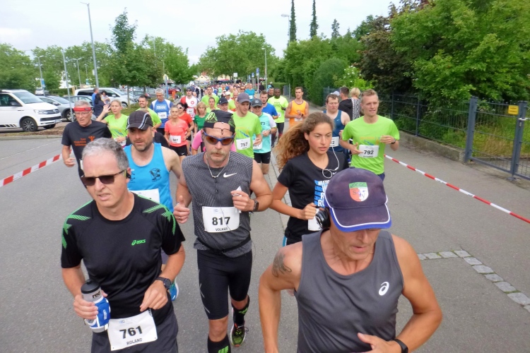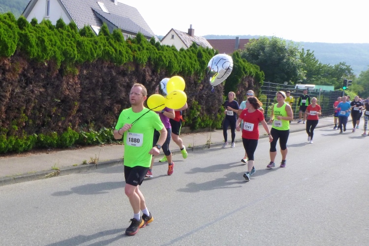 Die Kappishäuser Straße säumen wieder viele schöne Eigenheime. Rechts spenden einige Bäume ein wenig Schatten. Ja, auf den Wetterbericht war wieder einmal kein Verlass. Hatte man für lange Zeit Gewitter und Regen in Aussicht gestellt, so sollte es gemäß der aktuellsten Vorhersage am Vormittag zumindest wolkenverhangen bleiben. Aber Petrus hat wohl ein Einsehen und möchte uns auch dieses Jahr wieder zu einem sonnigen „Vergnügen“ verhelfen. Ein Läufer kündigt spaßeshalber an, sich beim Veranstalter beschweren zu wollen, da er auf das Einreiben mit Sonnencreme verzichtet habe. Ich freue mich schon auf einen frischen Sonnenbrand und Judith vermisst ihre dunkle Brille.