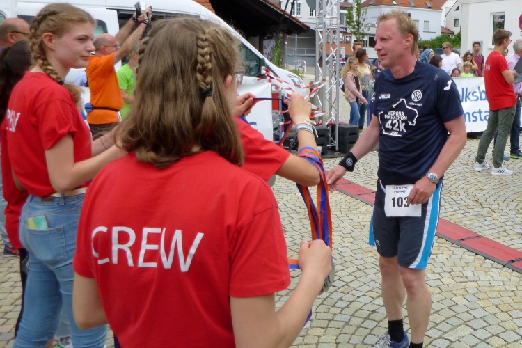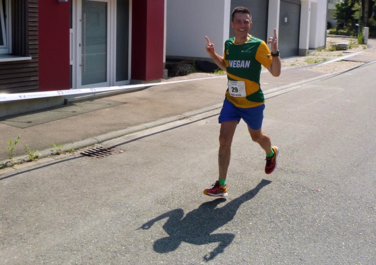 Ein Läuferpaar kommt mir entgegen. Auf den Hemden entziffere ich „Islas Canarias“. Wie sich in der kurzen Begegnungszeit herausstellt, gehören die beiden zu einer Gruppe aus Spanien, die heute am Start ist.