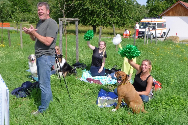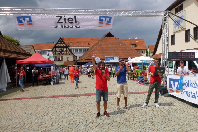 Eine Finisherin kommt mir samt Medaille entgegen, sie geht barfuß durch das frisch gemähte Kornfeld. Jetzt wird mir klar, was mit dem auf Plakaten angekündigten traditionellen „Schäferlauf“ gemeint war: Außer Party gibt es da noch einen Brauch, den der Chronist Jakob Frischlin anno 1599 wohl so beschrieben hat: „[…] darnach wann dieser Dantz vergangen, die Schäffer zu lauffen anfangen, ziehen sich bis auffs Hemmet aus, es würdt offt ein groß Lachen draus […], durch Stupflen Feld mit blosem Fueß, ein ieder Schäffer lauffen mueß.“ Oder eben eine Schäferin.