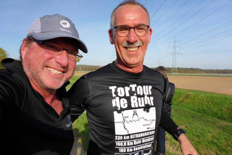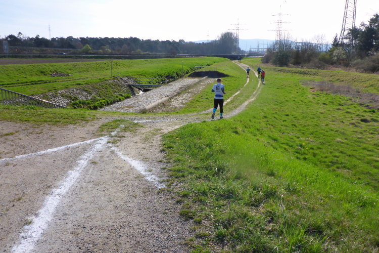 Zehn Mal werden wir an diesen historischen Wunderwerken vorbeilaufen, man muss es nur wissen. Deswegen bin ich hier. Oder glaubt irgendwer, dass ich hier die Landschaft oder den Kurs bewundere? Nur wer genau hinschaut erkennt bei Kilometer 2,5 die Reihe der Lastwagen durch die dürren Bäume, die hier auf den Montag warten. Also, nicht die Bäume, sondern die Lastwagenfahrer. Angeblich werden zwischen 0 und 7 Uhr keine alkoholischen Getränke an der Autobahnraststation verkauft, das muss ich aber mal recherchieren. Jedenfalls rieche ich in der vierten Runde, dass nun die Fritteusen angeworfen werden. Es ist also nach 11 Uhr. Wenn ich Ultra laufe, dann schärfen sich meine Sinne, dann werde ich zum Trüffelhund, finde Essen und Getränke, die kilometerweit weg sind.