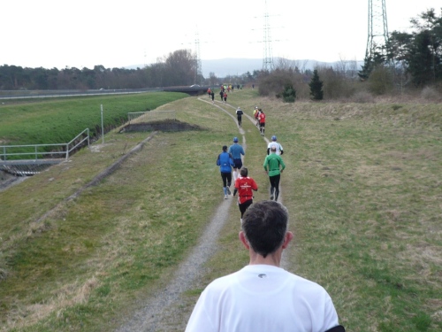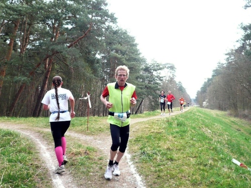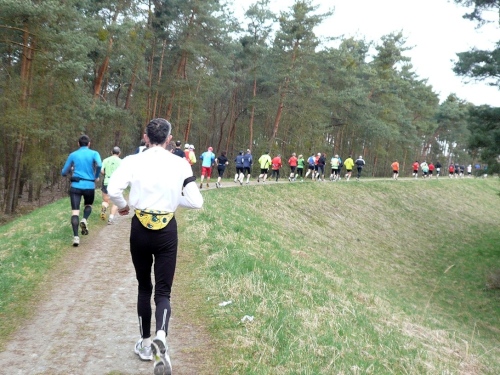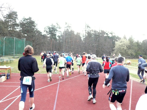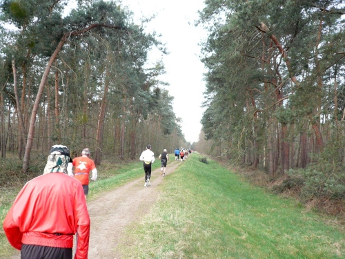 Ich bin zum ersten Mal hier, die Strecke ist unspektakulär. Deiche, Wald und sandige Felder. Der 5 km-Rundkurs wird 10 mal absolviert. Viele fragen mich, ob sowas nicht langweilig wäre. Nö. Es ist enspannend. Gespräche, Gedanken und Träumereien bestimmen die nächsten Stunden. Man weiss, wo welcher Stein liegt und wieviele Spechte in dem Gebiet leben, ich sehe Rehe, die durch die Reihen der Birken springen, freue mich an den kleinen Blüten, frage mich, ob da Artischocken oder Plumbago angebaut wird, und laufe einfach.