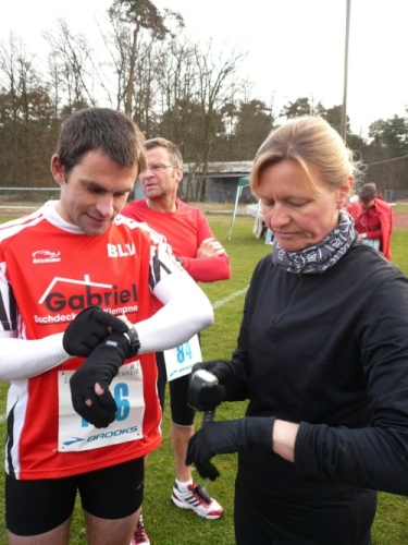 Im Gegensatz zu gestern im Königsforst treten heute nur Profies an. Aber auch heute ist es sehr familiär. Ich liebe diese Unaufgeregtheit. Ein paar Gespräche und schon ist es 9 Uhr. Start.