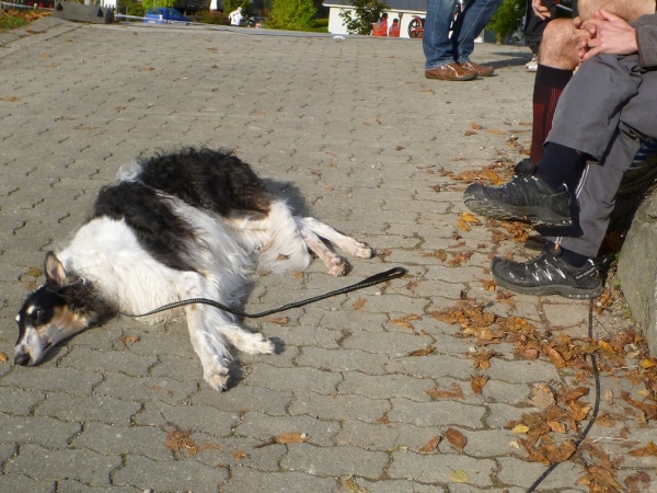 Die letzte Tankstelle lasse ich links liegen und starte durch. Dann kommt auf den nun etwa 1,5 Meter breiten Weg ein walkendes Hindernis: Rechts ein Stacheldraht, links die Latrop und Steine. Was also tun bei den zwei führenden NordicWalkern, von denen der Zweite mit seinen Stöcken fast eine überbreite Fahrbahn braucht? Nun, ein paar Sekunden warte ich ab, mache mich dann bemerkbar, schließe die Augen, schieße links an beiden vorbei und bin unverletzt auf und davon.