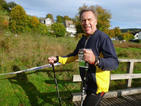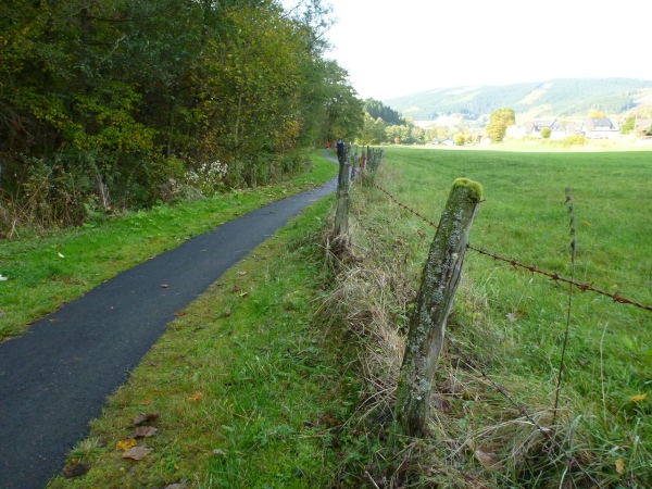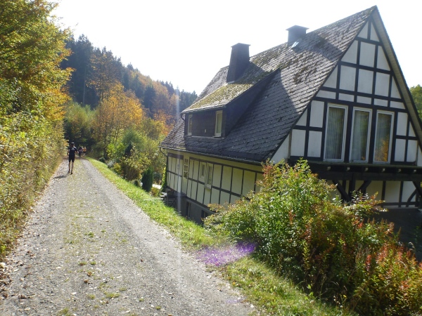 Das Latroptal wird langsam breiter. Der rund elf Kilometer lange Nebenfluss entspringt in der Nähe von Schanze und mündet bei Fleckenberg in die Lenne. Durch meine gescheite Renneinteilung kann ich immer mehr Läufer und Walker ein- und überholen.