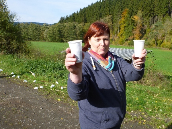 Die Jubiläums-Überraschung für die Teilnehmer ist ein eigens für den Rothaarsteig Marathon gestylter Löffel. Damit kann man künftig seine Marathonsuppe auslöffeln, die man sich mit der Meldung eingebrockt hat, haha. Nein, so eine Zugabe hatte ich in meinem Läuferleben auch noch nicht. Eine wirklich originelle Idee.