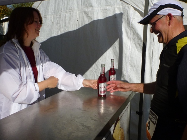 Und diese Stelle habe ich in guter Erinnerung, denn da wirst du als Bayer gut versorgt. Zwar dauert es ein wenig Zeit, bis der Helfer meinen Wunsch verstanden hat. Doch dann springt er in sein Wohnmobil und kredenzt Bier und Radler. „Nimm doch gleich die ganze Flasche mit,“ geht als Angebot an mich. Meine Verfolger lehnen den Hopfentrunk ab und begnügen sich mit Iso. Da entgeht euch etwas, liebe Freunde. Für mich ist ein anderer Geschmack die Rettung, denn irgendwann bringe ich das ganze Iso nicht mehr hinunter.