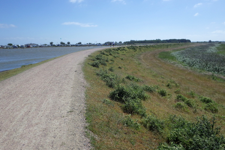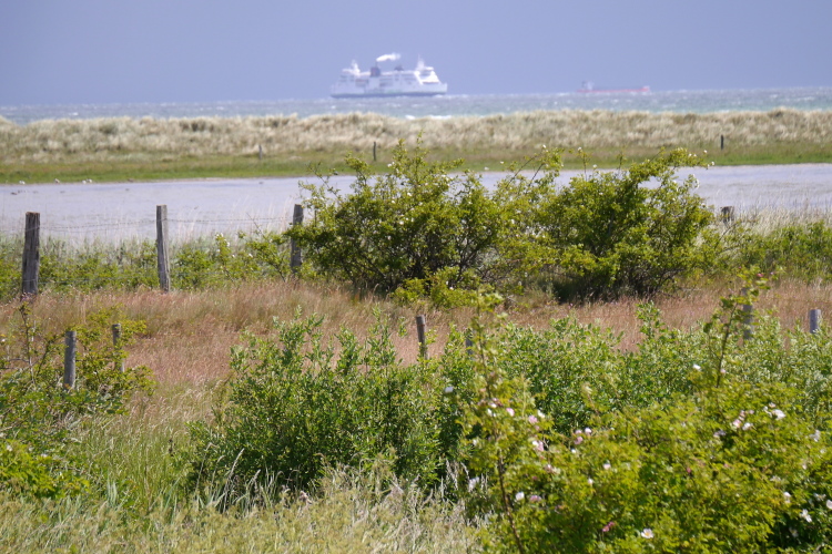 Wieder der Blick über Salzseen und das Meer. Zahlreiche Fähren und Frachter queren den Fehmarn Belt. Die dänische Küste mit einigen Windrädern ist auszumachen. Der 18 Kilometer breite Belt soll nach europäischem Konzept durch einen Tunnelbau Dänemark und Deutschland verbinden. Es ist gut vorstellbar, welche Einschnitte Landschafft und Natur durch diese Großbaustelle erfahren würden. Auch die Fehmarn-Sund-Brücke, die die Insel mit dem deutschen Festland verbindet, würde einem erhöhten Verkehrsaufkommen nicht standhalten. Eine neue Brücke und neue Straßen müssten her. Fehmarn selbst würde seinen Charakter verändern, der Tourismus könnte leiden... Fluch und Segen. Klar gibt es reichlich Widerstand gegen den Tunnelbau.