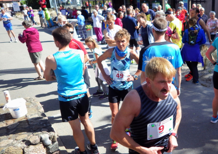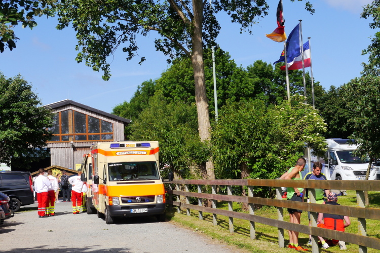 Dann die Halbmarathonmarke am Campingplatz Wallnau. Musikalische Umrahmung, Moderation und Publikumsanfeuerung sorgen für Schwung und Adrenalin. Nach der Verpflegung geht es frisch motiviert in die zweite Runde.