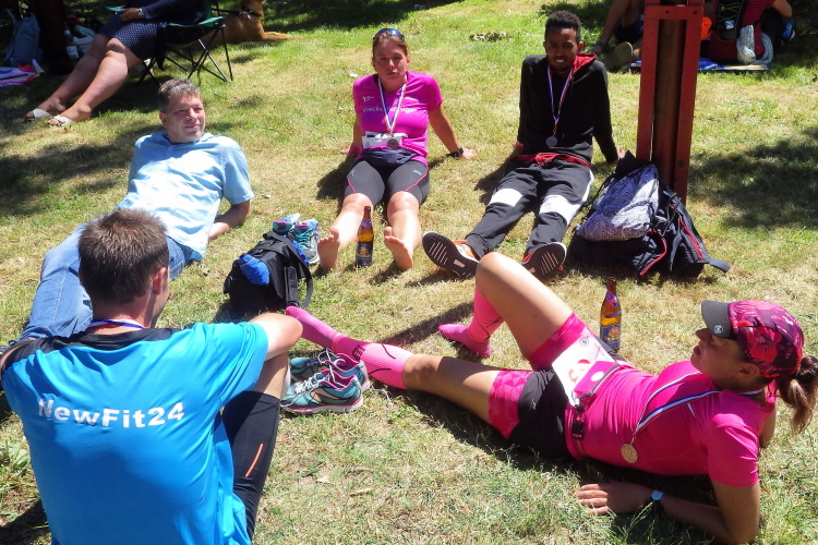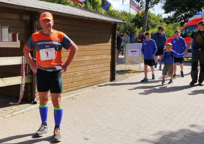 Und dann kommt das Finale auf der schattigen Allee zum Campingplatz. Moderation und Anfeuerung halten an, vor dem Ziel zeigt eine Digitaluhr die Laufzeit. Geschafft, das alkoholfreie Weizen ist jetzt besonders köstlich. Die meisten Teilnehmer sind zufrieden. Hier und da der erste Marathon, dort eine neue persönliche Bestzeit. Der Erlebnischarakter und der Sportgedanke halten sich gut die Waage. Für die ersten drei Platzierten Frauen und Männer im Marathon gibt es Preisgeld (200, 150, 100 Euro).