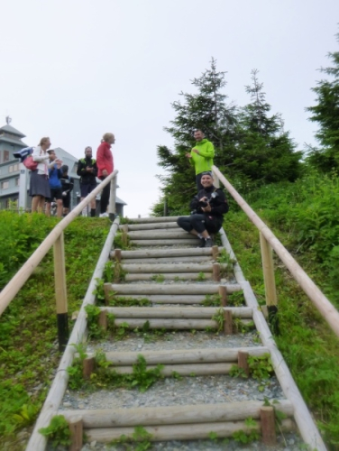 Monsterroller werden dir begegnen, irre Teile mit dicken Reifen. Ich bin sicher, die können auch bremsen, aber ob die auch wollen? Lauf links am Rand, das ist sicherer. Es wird noch steiler und kein Ziel in Sicht. Und dann geht alles ganz schnell. Ein schmaler Pfad teilt sich nach links ab und führt dich direkt auf die Himmelstreppe zu. Da warten aber keine Engel, sondern die Fotografen auf dich! Ergo- freundlich oder verwegen grinsen!