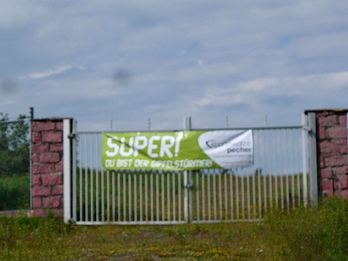 Schilder sagen uns ein, der Anstieg endet in Kürze. Noch 500 Meter, noch 100 Meter und dann heißt es „Super, du bist der Gipfelstürmer.“ Halbrechts ist schon die dritte V-Stelle eingerichtet, wir greifen eifrig zu.