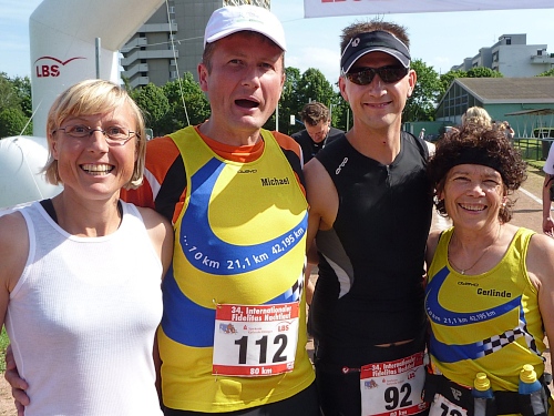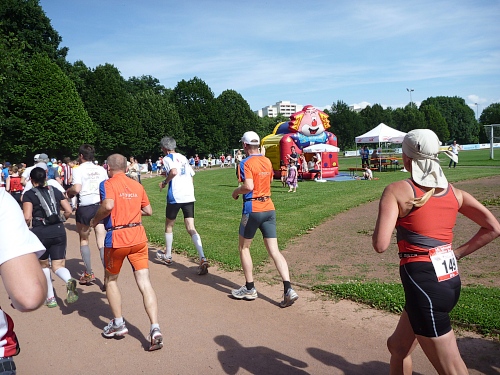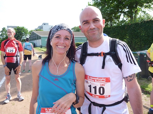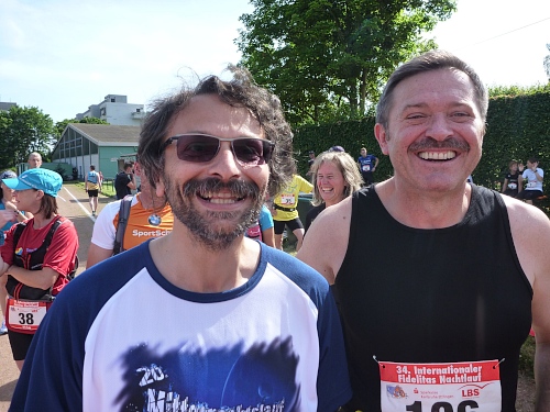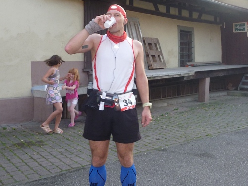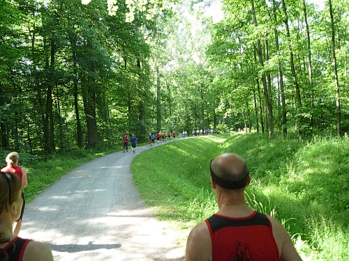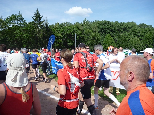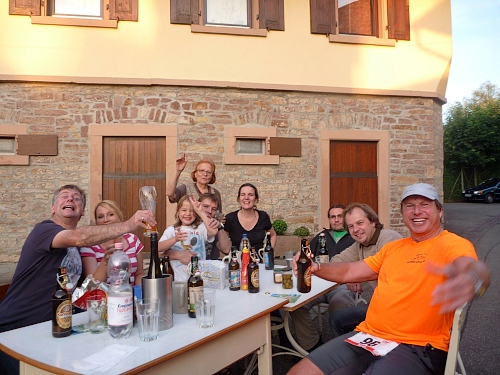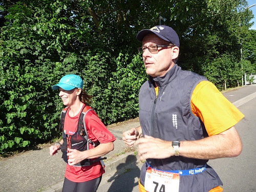 Der Fidelitas Nachlauf ist aus dem IVV-Nachtmarsch geboren worden, deswegen auch das reichliche Zeitlitmit von 16 Stunden. Dazu 16 gute Verpflegungsstellen, das alles für 40 Euro Startgeld. Eine Handvoll Wanderer startet schon um 16 Uhr, die Läufer um 17 Uhr. Abgabe für persönliche Streckenverpflegung bei km 38, 44 und 54 möglich. Schlecht, wenn die Stirnlampe im Beutel für km 54 liegt.