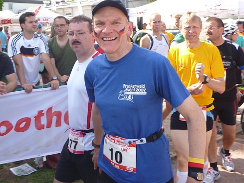 Seit 34 Jahren ist der Fidelitas 80 km Nachtlauf bei Ultraläufern ein Auslaufen in die kurze Sommerruhe, kein Ultra der Extreme, eher ein spielerischer Lauf durch die Dunkelheit der Nacht. Zwischen den Stadien der zwei ausrichtenden Vereine ist ein ruhiger Weg, ein idealer Platz, um nach dem Zieleinlauf noch einige Stunden im Kofferrraum zu dösen. Ein bekannter Camper steht schon da. Conny drückt mir sofort ein Bier in die Hand und Jörg eine Schmalzstulle. Lasst die Spiele beginnen!