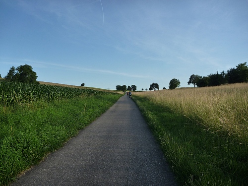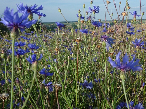 Oben, in der Nähe des Rittnerthofes, schon auf der Albfläche, besticht die wellige Landschaft mit ihrer abwechlungsreichen Schönheit. Faszinierend für mich jedes Jahr das reife Rapsfeld, das von tausenden Kornblumen gekrönt wird.