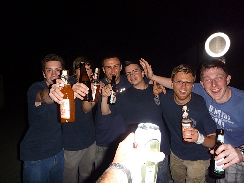 Ohne Nachttischlampe wird es hier sehr dunkel. Ich verabschiede mich von den netten Leuten und treffe Dennis, den Newcomer wieder. Ihm ist alles widerfahren, was ich vor Stunden prophezeit habe. Mit leichterem Magen ist er nun wieder ganz gut dabei.
