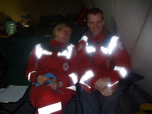 Viel Zeit verbringe ich bei den Rotkreuzhelfern, die im Generatorenlicht über die Nacht der Läufer wachen. Wenn die Kaffepats durch die Maschine gedrückt werden, flackert das Licht. Ich brauche jetzt alle 5 Kilometer einen Espresso. Die Leute sind nett, auch wenn kurzzeitig der Generator jault.