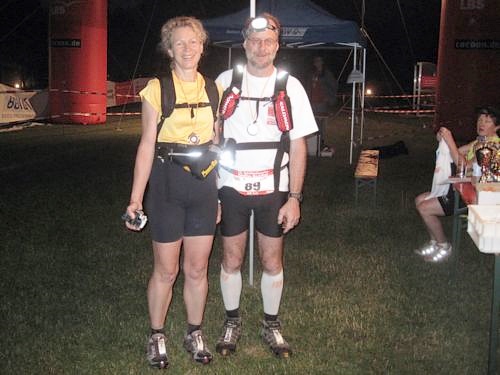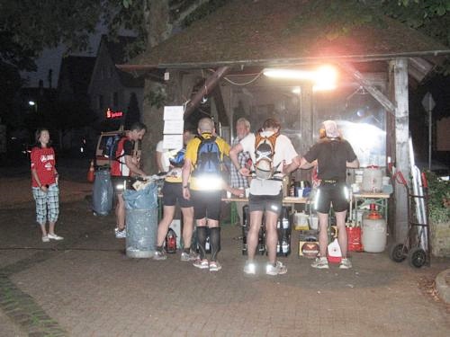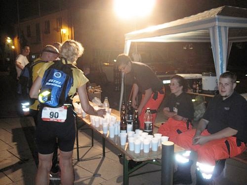 Noch ein paar Worte zur Veranstaltung. Mit Start und Ziel waren nahezu 100 Helfer an den Verpflegungsstellen im Einsatz. Ein großer Aufwand für die insgesamt wohl um die 500 Läuferinnen und Läufer: 138 Nachtläufer (80km), 304 Staffelläufer (76 Staffeln) und 53 Marathonis. Auch die letzten Jahre hatte man in etwa diese Teilnehmerzahl, die Strecke selbst aber würde viel mehr Teilnehmer vertragen und den Helfern an den Verpflegungsstellen ist es sicher egal, ob da 500 oder 1.000 vorbeikommen. Warum nur dümpelt die Teilnehmerzahl schon seit Jahren auf diesem niedrigen Niveau?