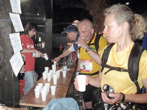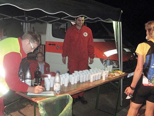 Insgesamt 19 Stationen, also spätestens alle 4-6 km, die meisten ausgestattet mit Wasser, Tee, Cola, Malzbier, Banane, Brotstücken, Kuchen.