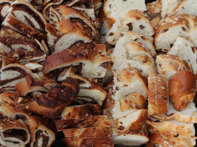 Wir kommen aus dem Wald und laufen auf einem geteerten Feldweg durch Wiesen, die dringend auf die Sense warten. Die Äpfel und Birnen an den wenigen Obstbäumen sind noch lange nicht reif und wenn, dann kaum genießbar. Früher machte man Most davon. In jedem Ort gab es eine Kelter. Und heute?