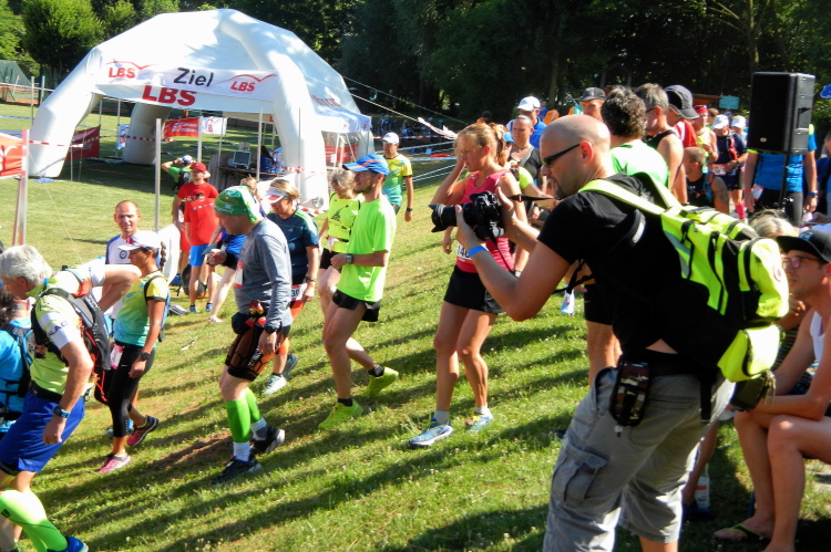Durch den Ort hindurch geht es durch den selbstgewählten Ausschluss der Bewohner. Nicht ganz, denn in einem Hof sitzt eine fröhliche Truppe und lädt ein auf ein Gläschen Sekt. Schon zuvor lauerte die Versuchung am Wegesrand in Form einer Eisdiele. Wer länger braucht, könnte sich solche Eskapaden leisten; ich riskiere nichts. Ankommen ist meine Devise auf meinem ersten Ultra seit 14 Monaten.