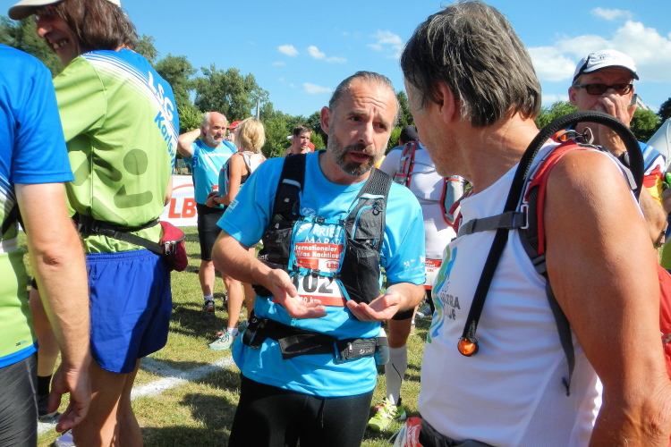 Keine Zeit bleibt mir, um mich mit dem Streckenverlauf auseinanderzusetzen. Idealerweise hätte ich mich sowieso schon im Vorfeld damit befassen sollen. Genügend Lauferfahrung hätte ich, um den Stellenwert einer guten Vorbereitung zu kennen. So gehe ich um 17.00 Uhr am Ende des Feldes auf der Strecke mit nicht viel mehr Streckenkenntnis als die Gesamtdistanz und die der Ausschreibung entnommenen Angabe, dass ungefähr alle fünf Kilometer ein Verpflegungsposten zu erwarten sei.