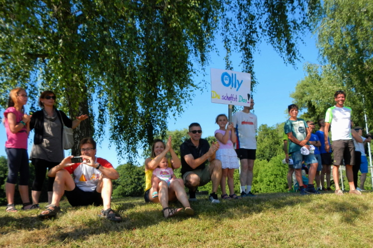 Die Gegend scheint aus Familiengärten, Gleisanlagen und mehrspurigen Straßen zu bestehen, wobei das Bild von Ersteren geprägt wird. In Grötzingen ist es dann soweit, das Buffet ist angerichtet. Mir entgeht allerdings nicht, dass mir aus der letzten vorhandenen Flasche Iso nachgeschenkt wird.