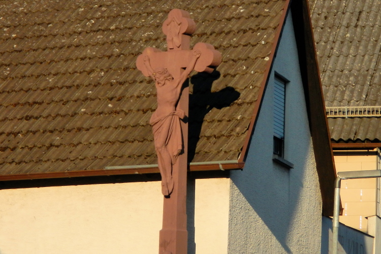 Anschließend kann ich es rollen lassen. Rechts am Wegesrand sind das Bürkleskreuz und eine Tafel mit der entsprechenden Erklärung. Angst, dass mich Räuber erschlagen könnten, habe ich keine. Dafür trage ich zu wenig Geld bei mir. Bleibt die Hoffnung, dass nicht hinter einem Baum oder später in der Dunkelheit der Hammermann mir auflauert.