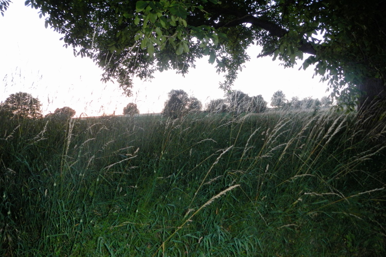 Das dämmrige Licht wird im Gehölz noch dunkler und beim Heraustreten sind auch über Mutschelbach die Nacht ein- und die ersten Glühwürmchen aufgebrochen.