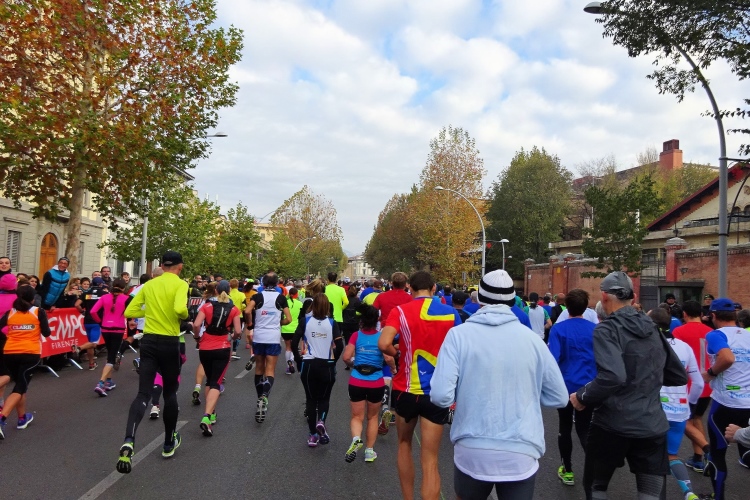 Ich schmökere in der mit dem Startsackerl ausgehändigten Marathonbroschüre. Mich interessieren die Teilnehmerzahlen und die Herkunftsländer der registrierten Läuferinnen und Läufer. Mit 8015 Marathonis dominieren ganz klar die Italiener, gefolgt von den Franzosen (712), den Briten (alle Länder des Vereinigten Königreiches, 385), den Deutschen (238), den Spaniern (213) und uns Österreichern (immerhin auch 155).