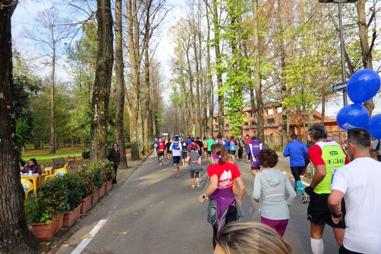 Nach weniger als zwei Minuten erblicke ich die lange Kolonne der hinter uns in der 4:30er-Gruppe nachkommenden Läufer. Nun geht es nach Südwesten nochmals unter einer Bahnunterführung durch und hinein in den 160 ha großen Parco delle Cascine, der im 17. Jahrhundert nach englischem Vorbild angelegt wurde und heute als eine multifunktionale, der Öffentlichkeit zugängliche Grünanlage mit zahlreichen Sportstätten fungiert.