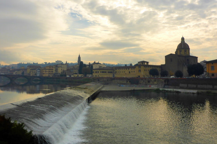 Weiter geht es Richtung Flussufer. Das Gucci-Museum interessiert mich nicht, aber der Palazzo Vecchio, das uns allen bekannte Wahrzeichen, das Stadtparlament, der Mittelpunkt der weltlichen Macht des 14. Jahrhunderts. Noch darf ich da noch nicht hin, es liegen noch wunderbare 4 Kilometer vor mir, die zunächst wieder durch die Gebäude der Uffizien ( = Büros) führen. Sie wurden im 16. Jahrhundert als Büros für die Minister der Medici gebaut, beherbergen nun die Gemäldesammlung der Renaissance. Bartolemeo Christofori entwickelte hier den Vorläufer des Kalviers, das Cembalo. Ganz hoch über uns nun die Brücke der Minister. Die letzte Vertreterin der Medici vermachte alles der Stadt Florenz, unter der Bedingung, dass es niemals als der Stadt entfernt werden dürfte.