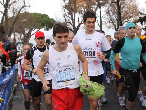Mittlerweile sind fast alle Marathonis auf dem Platz versammelt. Nur vereinzelt kommen noch welche zu Fuß (es sind nur 15 Minuten von der Kleiderabgabe unten am Arno) oder mit den Shuttle-Bussen an. Der Florenz Marathon gehört zu den wenigen Veranstaltungen weltweit, die ständig steigende Teilnehmerzahlen vorweisen können. In diesem Jahr sind 10.104 Läuferinnen und Läufer aus 63 Nationen angemeldet. Die stärkste ausländische Fraktion stellen die Franzosen mit 588 Sportlern vor den Engländern (497), Deutschen (349) und Österreichern (295). Aus der Schweiz sind immerhin 74 Läufer angereist. Nach Rom ist Florenz damit der zweitgrößte Marathon in Italien. Der Lauf wird drei Stunden live im TV übertragen. Überhaupt, der Marathonlauf ist dabei, in Italien zum Nationalsport zu werden. Nur bei den Frauen scheint das lange Laufen (noch) nicht so gut anzukommen. 793 italienischen stehen 713 ausländische Läuferinnen gegenüber.