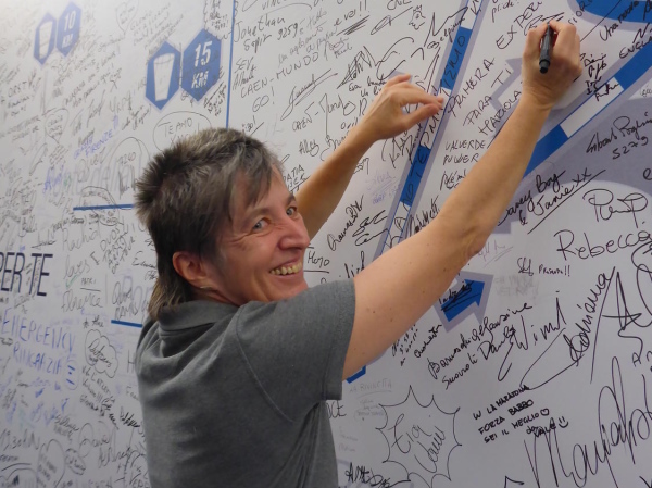 Die Anreise am Freitag lässt schon mal hoffen. Schnell ist die Winterjacke verstaut und mit leichter Kleidung machen wir uns zur Marathonmesse auf. Der Lauf scheint prächtig organisiert zu sein. Bereits im Vorfeld konnte man das Gesundheitszeugnis einreichen, was direkt auf der Anmeldebestätigung des Veranstalters vermerkt wird. Nachdem man seinen Ausweis gezeigt hat, kommt man in Besitz seiner Startnummer auf der nicht nur der volle Name sondern auch die Flagge des Heimatlandes aufgedruckt ist. Das ist super, denn so kann man Landsleute schnell erkennen. Auch eine Startertasche mit netten Kleinigkeiten gibt es dazu. An einer großen Wand ist der Streckenverlauf zu sehen. Jeder Läufer kann sich darauf „verewigen“. Wir suchen in der Mitte einen schönen Platz für unseren Servus.