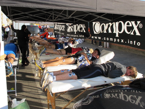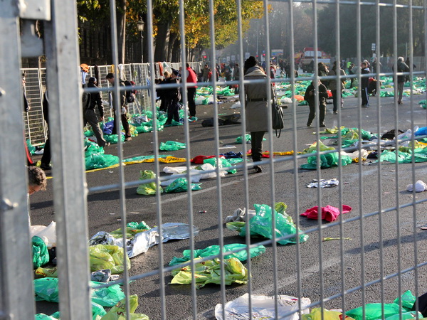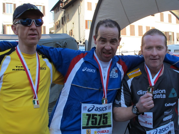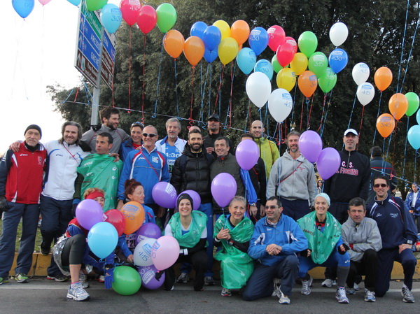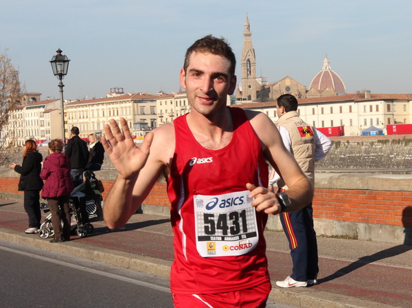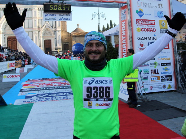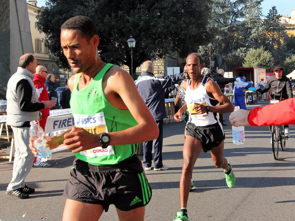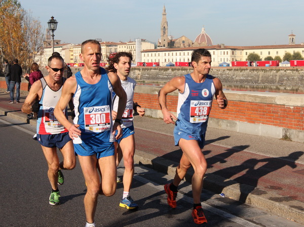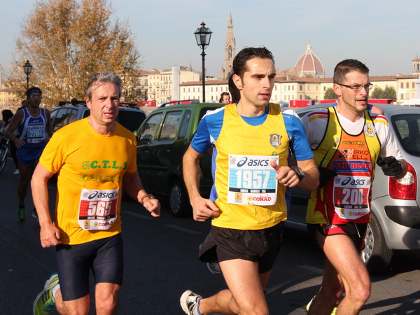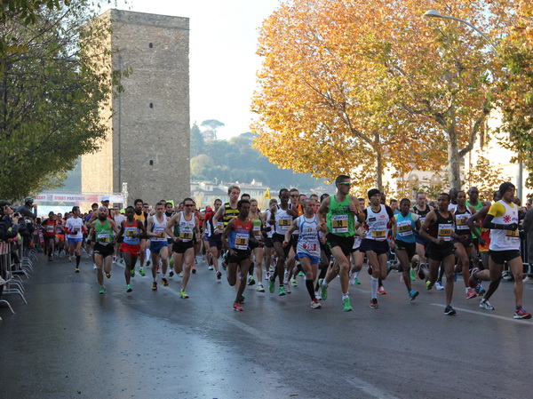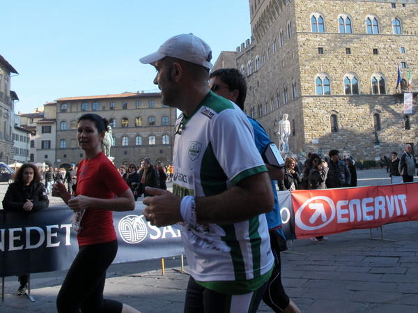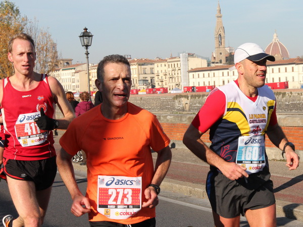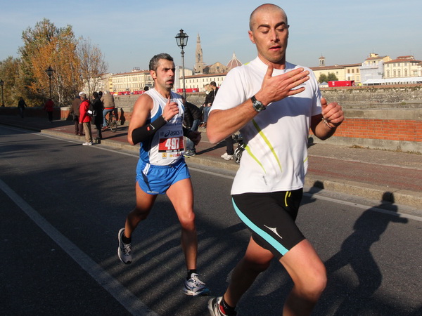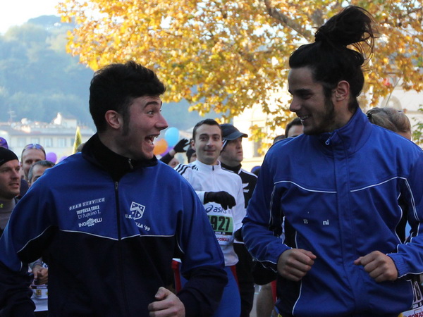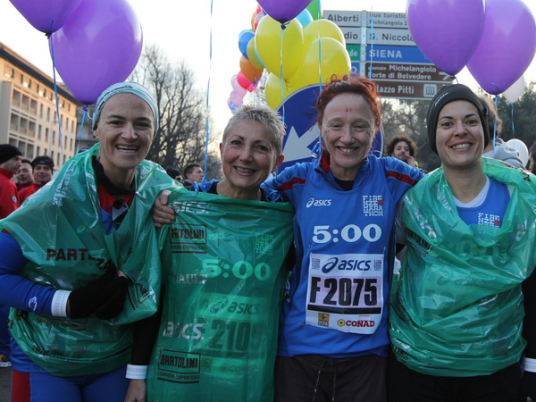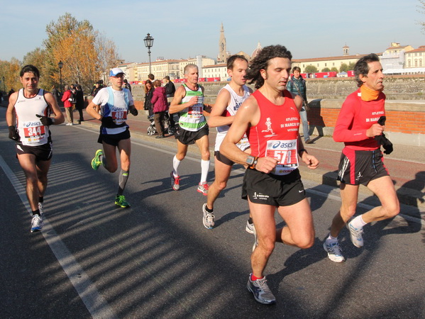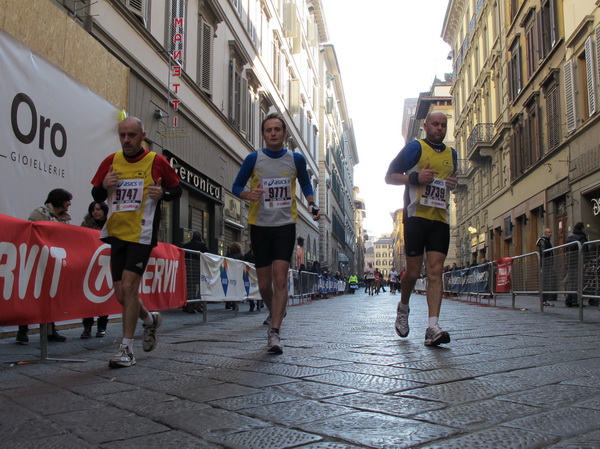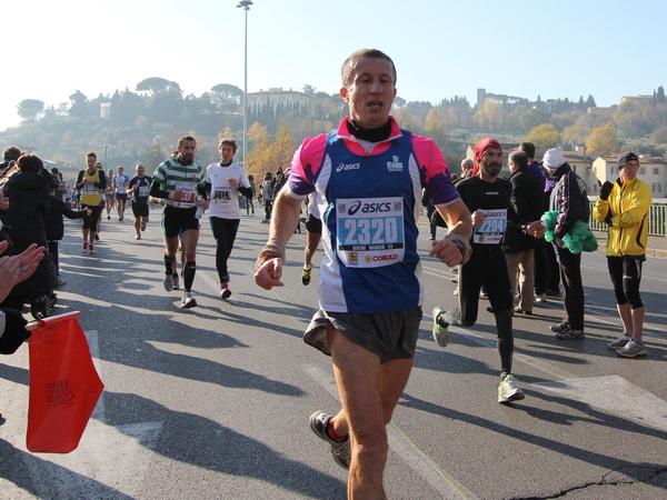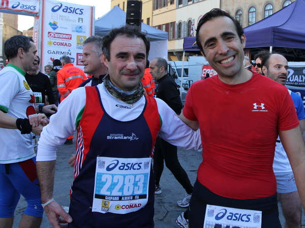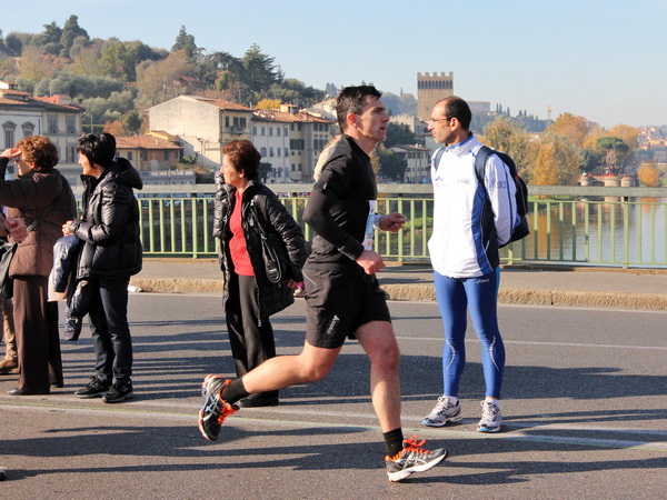 Durch eine schmale Gasse erreichen wir das Arno-Ufer, wo aufgereiht die roten LKW-Aufleger mit den Kleiderbeutel stehen. Hunderte Läuferinnen und Läufer ziehen sich dort um, als die Gruppe „Marathon Abili“ mit ihren behinderten Freunden auftaucht. Spontan versammeln sie sich an der Strecke und bereiten den wahren Helden dieses Laufes einen Empfang, dass es denen die Tränen die Augen treibt. Es ist für mich der schönste Moment des Tages.