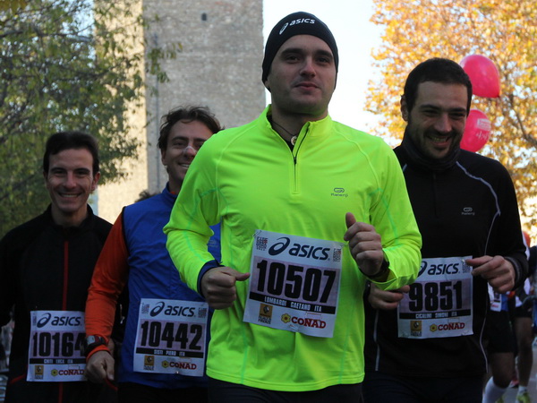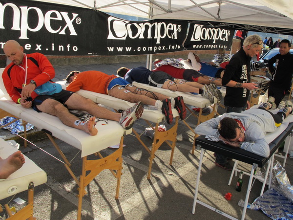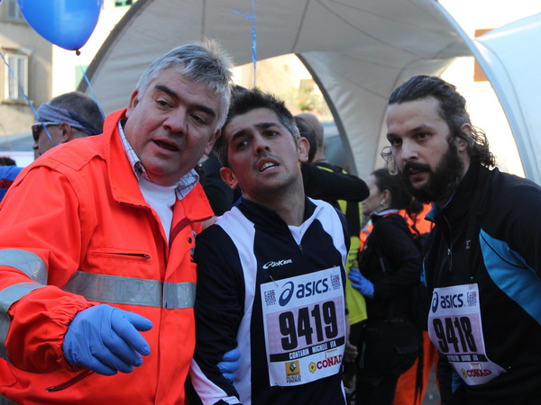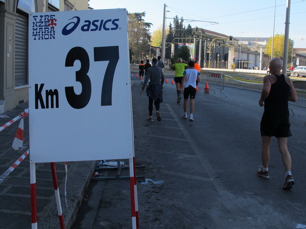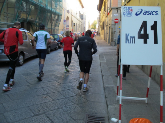 Noch 10 km. Luca gehört zu den 4:45-Pacern. Er hat die Aufgabe übernommen, Läufer, die etwas zurückgefallen sind, wieder an die Gruppe heranzuführen. Er will wissen, was marathon4you ist. Inzwischen habe ich ein paar Standardsätze auf Englisch parat. “Du kannst deutsch sprechen”, sagt er mir aber. Er hat etliche Jahre in der Nähe von Stuttgart gearbeitet. Was er von Spätzle hält, will ich wissen. Gut seien die, wie die Schwäbische Küche überhaupt. Er würde in Deutschland sowieso zu keinem Italiener gehen. Irgendwie würden die anders kochen als in der Heimat. Bei mir ist das genau umgekehrt. Keine Ahnung, wann ich zuletzt in einem typisch deutschen Gasthof war. Gibt es sowas überhaupt noch? Und wenn ich aus dem Kühlschrank alles “made in italy” rausnehme, ist kaum noch was drin.