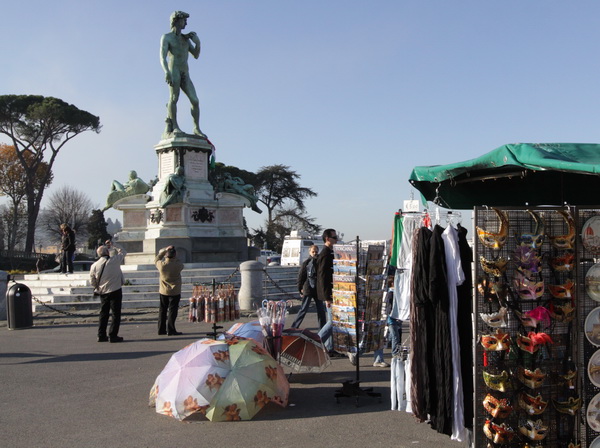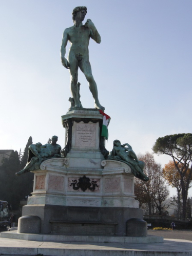 Durch schmale Gassen und auf teilweise holprigem Pflaster geht es weiter. Niemals würde ich auf die Idee kommen, dass sich hinter dem alten Gemäuer mit den vorgesetzten Laubengängen die Kunstakademie verbirgt. Das wäre auch nicht weiter erwähnenswert, würde da nicht Michelangelos David zu bewundern sein. Nicht eine Kopie wie auf Piazzale oder vor dem Pallazzo Vecchio. Nein, das Original, das der Meister 1501 – 1504 aus einem einzigen Marmorblock gehauen hat. Zuvor waren an dieser Aufgabe andere namhafte Künstler gescheitert. Der David gilt als die bedeutendste Skulptur der Kunstgeschichte.