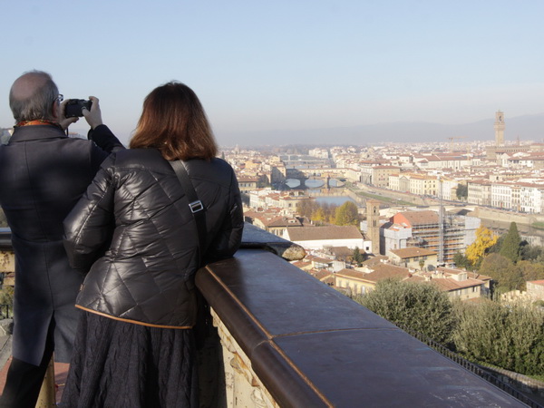 Da hilft nur weiterlaufen. Spätestens auf der Ponte Vecchio sehe ich wieder klar. Auf der berühmtesten Brücke von Florenz glitzert und funkelt es vor lauter Gold, Silber und Edelsteinen. Denn in den Geschäften dürfen sich seit 1593 nur Goldschmiede niederlassen. Zuvor waren dort hauptsächlich Schlachter und Gerber ansässig, die aber einen solchen Gestank verursachten, dass den hohen Herren bei ihrem Weg vom Palazzo Pitti zur Arbeit im Palazzo Vecchio oder in den Uffizien fast die Luft wegblieb.