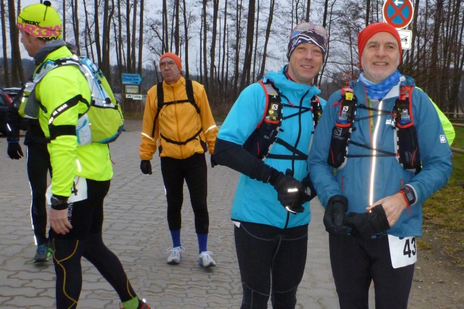 Nach drei Bierchen gehe ich beschwingt in die Heia. Was mich ein wenig sorgt, ist die Wettervorhersage. Der Lauftag soll ungemütlich werden mit Wind, Regen, Schneeregen und Schnee. Zumindest sollen wir noch trocken starten können, aber im Laufe des Vormittags kommt eine Front mit Niederschlägen. Hoffentlich trifft mich ein solcher nicht.