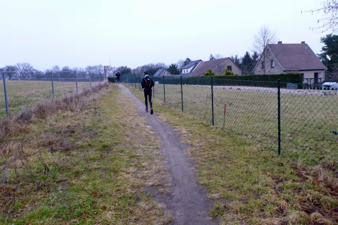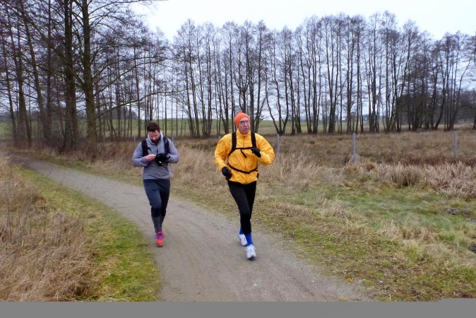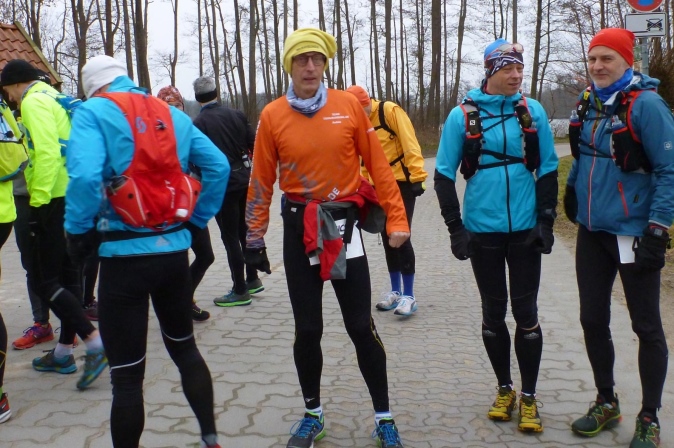 Holger beschreibt dann den Streckenverlauf, der uns im Uhrzeigersinn um den Plauer See führen wird. Blaue Pfeile sind zwar angebracht worden, aber wir sollen uns immer wieder nach den Schilder des Radweges um den See richten. Wir werden häufig an der Uferlinie laufen, so Holger, und wer den See länger nicht sehen wird, läuft auf Abwegen. Aufgrund der Witterungsbedingungen werden drei statt vier Verpflegungsstellen eingerichtet: Eine nach zehn Kilometer, eine im Tal der Eisvögel und eine weitere nach gut 35 Kilometer. Da macht es schon Sinn, wenn sich jeder etwas gegen Hunger und Durst mitnimmt. Einkehrmöglichkeiten gibt es kaum, denn die Campingplätze befinden sich Winterschlaf.