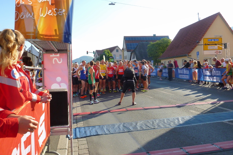 Bisher habe ich mich immer der Langstrecke gestellt, in diesem Jahr reichen mir ein paar Kilometer weniger. Henny wird als meine Staffel-Partnerin die ersten zehn Kilometer bestreiten, bevor ich mich auf die letzten 32 Kilometer begeben werde. So finde ich genügend Zeit, die Starts der folgenden Rennen zu beobachten sowie das Marathonrennen in Ebermannstadt zu verfolgen, wenn die nach der ersten Schleife von Weilersbach zurückkommen.