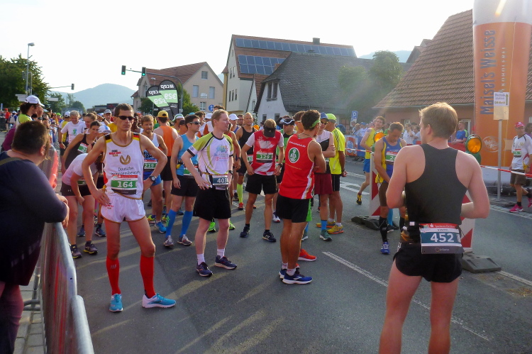 Samstag in der Früh um 06.00 Uhr, es hat gerade das Morgengrauen eingesetzt, schwinge ich mich in meine Karre, um die rund 150 Kilometer nach Ebermannstadt zurückzulegen. Einige Baustellen auf den Autobahnen kosten ein wenig Zeit. Ich hätte noch früher aufstehen müssen, da die B 470, unsere Laufstrecke, ab 07.00 Uhr für den Verkehr komplett gesperrt ist. Ich eiere am Marktplatz rum, komme aber da nicht durch und handele mir einen Anpfiff von einer Polizeistreife ein. So komme ich erst gegen 08.15 Uhr am Landratsamt an und ergattere meine Startnummer neben diverser Zugaben, unter anderem einen Falttrinkbecher, den man gleich heute einsetzen könnte. Man überlegt, künftig keine Plastikbecher mehr einzusetzen. Ein guter Ansatz.