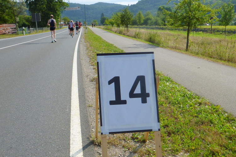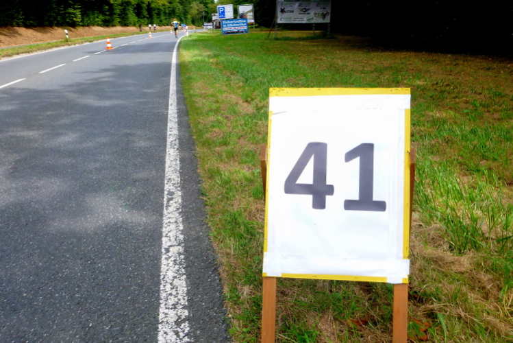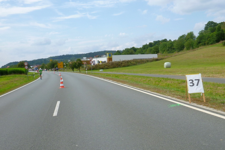 Halluziniere ich? Km 40 wird angezeigt und daneben km 30. Was ist denn das? Dann sehe ich „Skating 40“! Aha, die haben fertig. Ich bin auch fertig und muss eine längere Gehpause einlegen. Ich kann erst auf Höhe Gasseldorf wieder antraben, es geht leicht hinunter nach Ebermannstadt.
