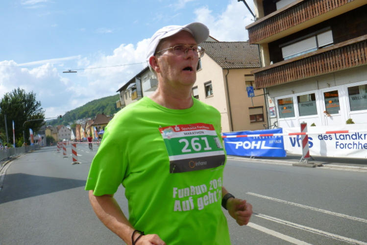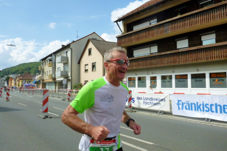 2012: Da ging es bei mir perfekt von Forchheim nach Ebermannstadt. 20 Grad und kaum Wind. 256 Finisher beim Marathon. Die zweite Hälfte ging es sechs Minuten schneller als die erste. 3.36.58 Stunden, 10. in der Klasse M50.