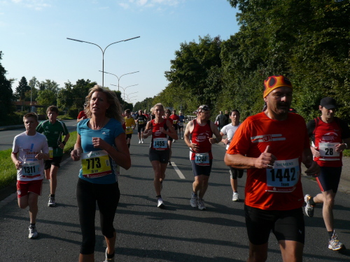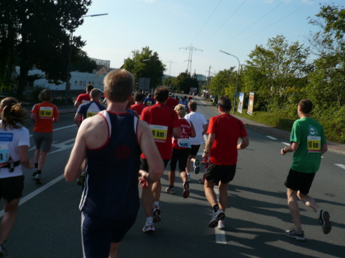 Um Punkt neun erfolgte dann auch für uns Läufer der Startschuss. Neben den Marathonläufern starteten zeitgleich die 16km-Läufer und die Team-Marathon-Läufer. Vom Paradeplatz wurden wir zunächst auf einer kleinen Schleife durch das Gewerbegebiet von Forchheim geführt bevor wir ins Tal der Wiesent geleitet wurden.
