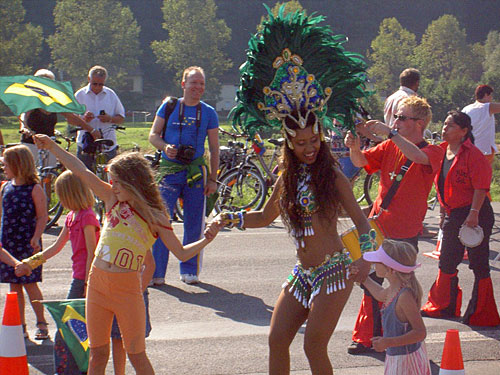 Ein kurzes Stück weiter wird’s dann heiß. Samba ist angesagt. Sind die vielen Leute jetzt wegen der Läufer oder wegen der hübschen Mädchen hier? Weiter geht’s nach Muggendorf. Die Skater kommen uns jetzt scharenweise entgegen. Es ist absolut nicht gefährlich. Trotzdem laufe jetzt noch konsequenter als sonst äußerst rechts.