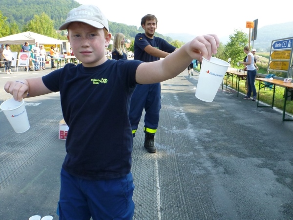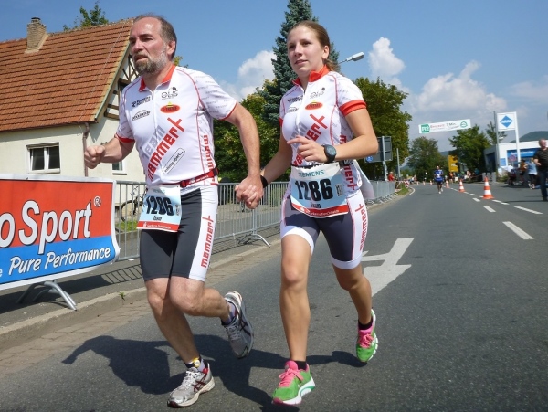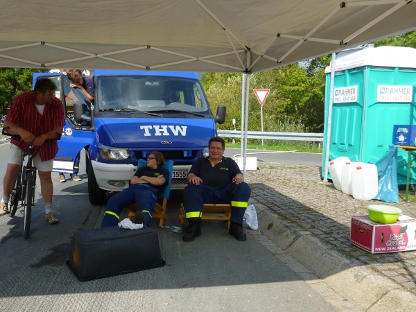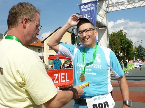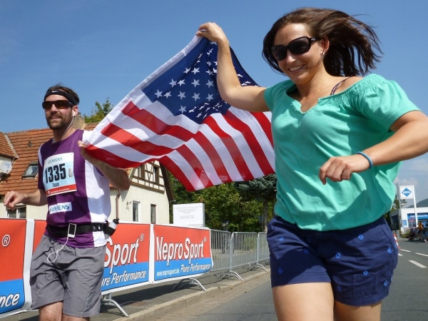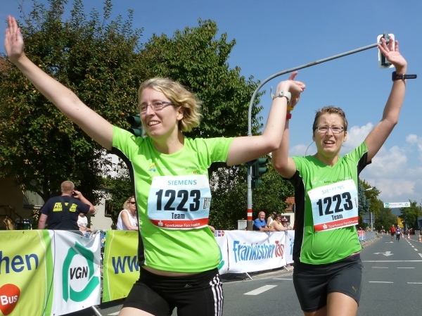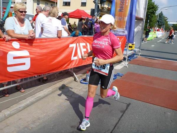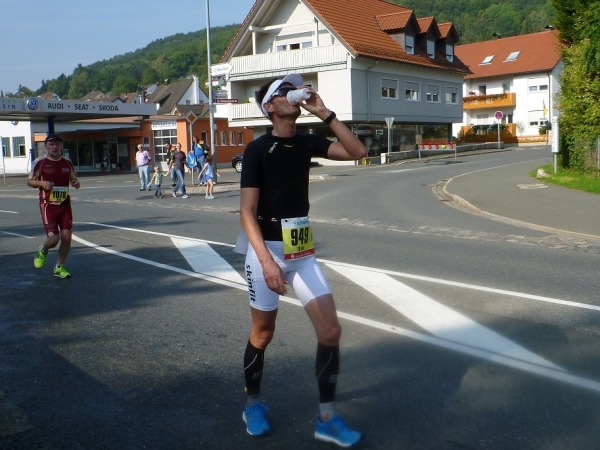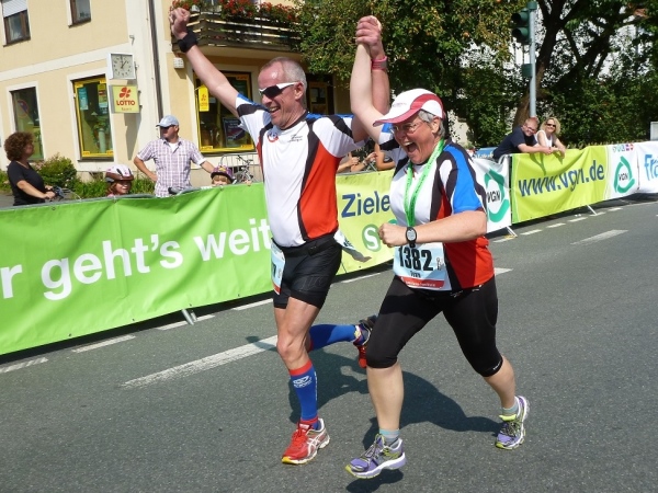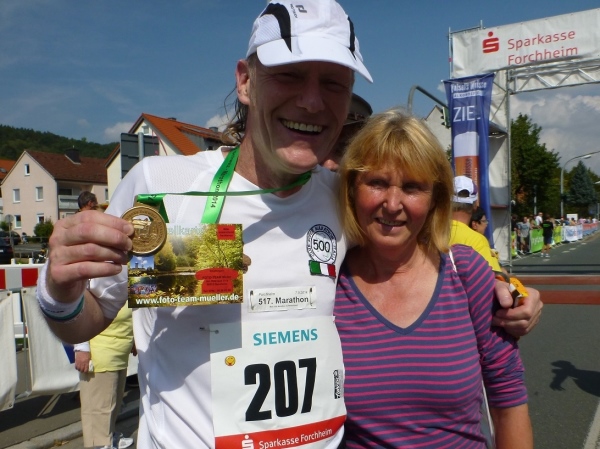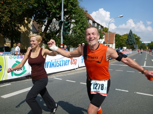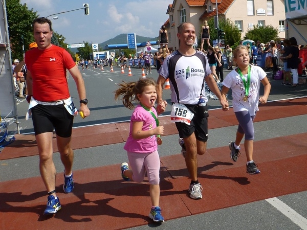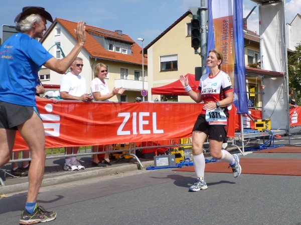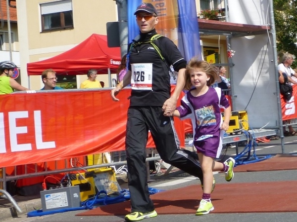 Helfer hängen den Finishern Medaillen um und übergeben kurz hinter der Ziellinie Riegel. Nur ein paar Schritte weiter können wir uns an Cola und Obst laben. Verbessern kann man sich bei den Duschgelegenheiten, denn das Wasser in der Schule ist, ich zitiere einen Einheimischen, arschkalt. Aber sonst ist der eingeschlagene Weg goldrichtig im Frangnland.