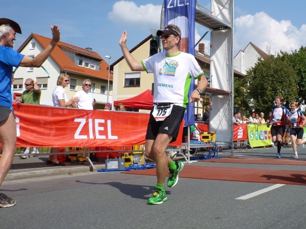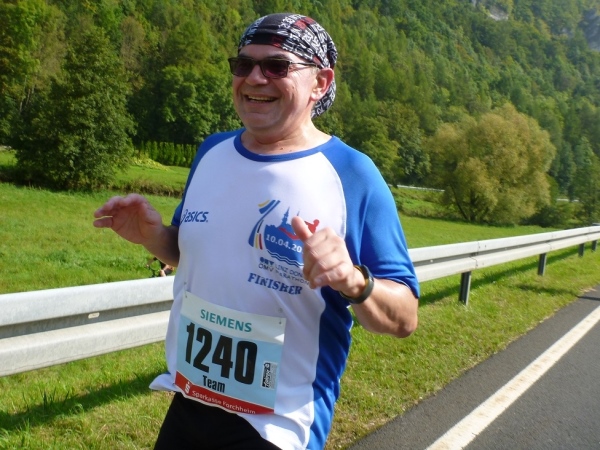 Die letzten zwei, drei Kilometer werden zur Quälerei, die Hitze plagt mich, der Sprit ist alle. Einige Teamläufer gehen vorbei und auch einige Marathonsolisten. Ich bin dann froh, als ich den Anstieg bei Kilometer 41 bezwungen habe. Das letzte Stück hinunter ins Ziel lasse ich es rollen. Bei 3:51 Stunden bleibt die Uhr stehen. Geschafft ist der Marathon und ich auch. Auf der zweiten Hälfte bin ich eingebrochen, sechs Minuten habe ich da mehr benötigt. Ich schiebe es auf die Hitze.